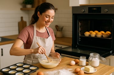Compra ingredientes en mayoristas locales para ahorrar 20-30% (harina a granel, por ej.). Total inicial: $30-50. En espacios chicos, crea una "zona repostería" en la encimera para no enredarte.