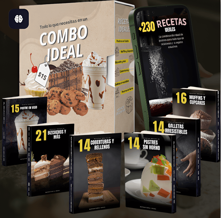 Explora el arte de la repostería con el exclusivo Combo Ideal, que abarca seis recetarios diseñados para endulzar cualquier ocasión. Desde opciones sin horno hasta exquisitas coberturas, galletas crujientes, bizcochos esponjosos, postres en vaso y la diversidad de cupcakes y muffins, este conjunto te sumerge en un viaje culinario emocionante. Además si tu propósito con estos recetarios es emprender te damos la información y herramientas necesaria para crear tu negocio. Cada recetario presenta las mejores recetas paso a paso, cuidadosamente seleccionadas para garantizar resultados espectaculares. Desde la preparación sin complicaciones hasta los toques finales, las instrucciones detalladas aseguran que incluso los principiantes logren resultados sorprendentes.